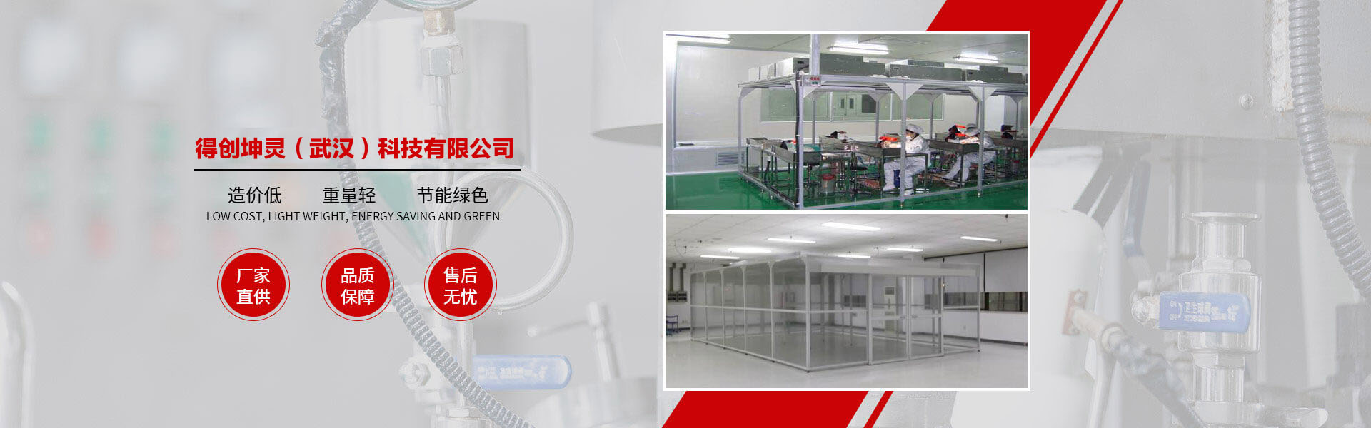 得創(chuàng)坤靈成立于2010年6月,專業(yè)從事食品無(wú)菌車間、GMP車間、電子無(wú)塵車間、食品醫(yī)藥包裝車間、醫(yī)療器械車間、潔凈棚、土建工程簡(jiǎn)易房、無(wú)菌實(shí)驗(yàn)室、組合式空調(diào)機(jī)組等項(xiàng)目的設(shè)計(jì)、裝修、施工、調(diào)試、安裝為一體的凈化工程公司,承接十萬(wàn)級(jí)、萬(wàn)級(jí)、千級(jí)、到百級(jí)的凈化車間、無(wú)塵車間、無(wú)塵室、潔凈廠房、潔凈室工程的改造與建設(shè)。 作為中國(guó)潔凈室系統(tǒng)工程及設(shè)備制造高品質(zhì)、專業(yè)化的代表,得創(chuàng)秉承“追求完美品質(zhì)、超越客戶期望”的理念,通過(guò)對(duì)客戶生產(chǎn)環(huán)境的深入研究及多年的工程實(shí)踐,積累了豐富的潔凈室空調(diào)凈化系統(tǒng)及節(jié)能優(yōu)化設(shè)計(jì)、項(xiàng)目管理及施工經(jīng)驗(yàn),綜合實(shí)力始終處于業(yè)界領(lǐng)先地位。 公司資質(zhì)齊全,包括裝飾裝修工程二級(jí)、機(jī)電安裝二級(jí)、電子與智能化二級(jí)、消防工程二級(jí)、環(huán)保工程二級(jí);擁有多名高級(jí)工程師及暖通設(shè)計(jì)工程師,有著醫(yī)藥凈化工程設(shè)計(jì)、食品無(wú)菌食設(shè)計(jì)、電子無(wú)塵車間設(shè)計(jì)經(jīng)驗(yàn),長(zhǎng)年與設(shè)計(jì)院有著良好的合作和溝通關(guān)系。公司多年專業(yè)從事凈化工程安裝業(yè)務(wù),擁有數(shù)次在全國(guó)各地有著豐富安裝經(jīng)驗(yàn)的安裝工程隊(duì)伍,在大型管道及彩板安裝方面有著豐富的安裝經(jīng)驗(yàn)和先進(jìn)的現(xiàn)場(chǎng)管理體系。 公司產(chǎn)品廣泛服務(wù)于電子、光電、微電子、光纖光纜、精密機(jī)械、生物制藥、食品飲料、航空航天等眾多領(lǐng)域。我們始終以技術(shù)為中心、以創(chuàng)新為動(dòng)力、以服務(wù)為己任。以一流的產(chǎn)品質(zhì)量,良好的售后服務(wù),參與到激烈的市場(chǎng)競(jìng)爭(zhēng)中來(lái),贏得客戶的支持與信賴。 隨著公司的持續(xù)發(fā)展、隊(duì)伍的日益壯大,公司將一如既往地堅(jiān)持"以客戶為中心"的理念,在激烈的市場(chǎng)競(jìng)爭(zhēng)中迎頭奮進(jìn),以"創(chuàng)一流品牌、建一流企業(yè)"的品牌拓展戰(zhàn)略,面對(duì)機(jī)遇與挑戰(zhàn),開(kāi)創(chuàng)一片嶄新的天地! 品質(zhì)成就夢(mèng)想、秉承口碑相傳、得創(chuàng)凈化……